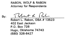I certify that I hand-delivered the above and foregoing Withdrawal Without Prejudice of Subpoena to Robert L. Rabon, Rabon, Wolfe, and Rabon. Post Office Box 726, Hugo. OK 74743, on this 12th day of August, 1997.