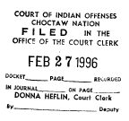It is hereby ordered that the above numbered cases will be heard before the Court of Indian Offenses of the Choctaw Nation of Oklahoma on the 5th day of March, 1996, at 1:00 o'clock p.m.