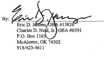 I hereby certify that on the 29th day of July, 1997, a true and correct copy of the foregoing was mailed with proper postage fully prepaid to the following:
